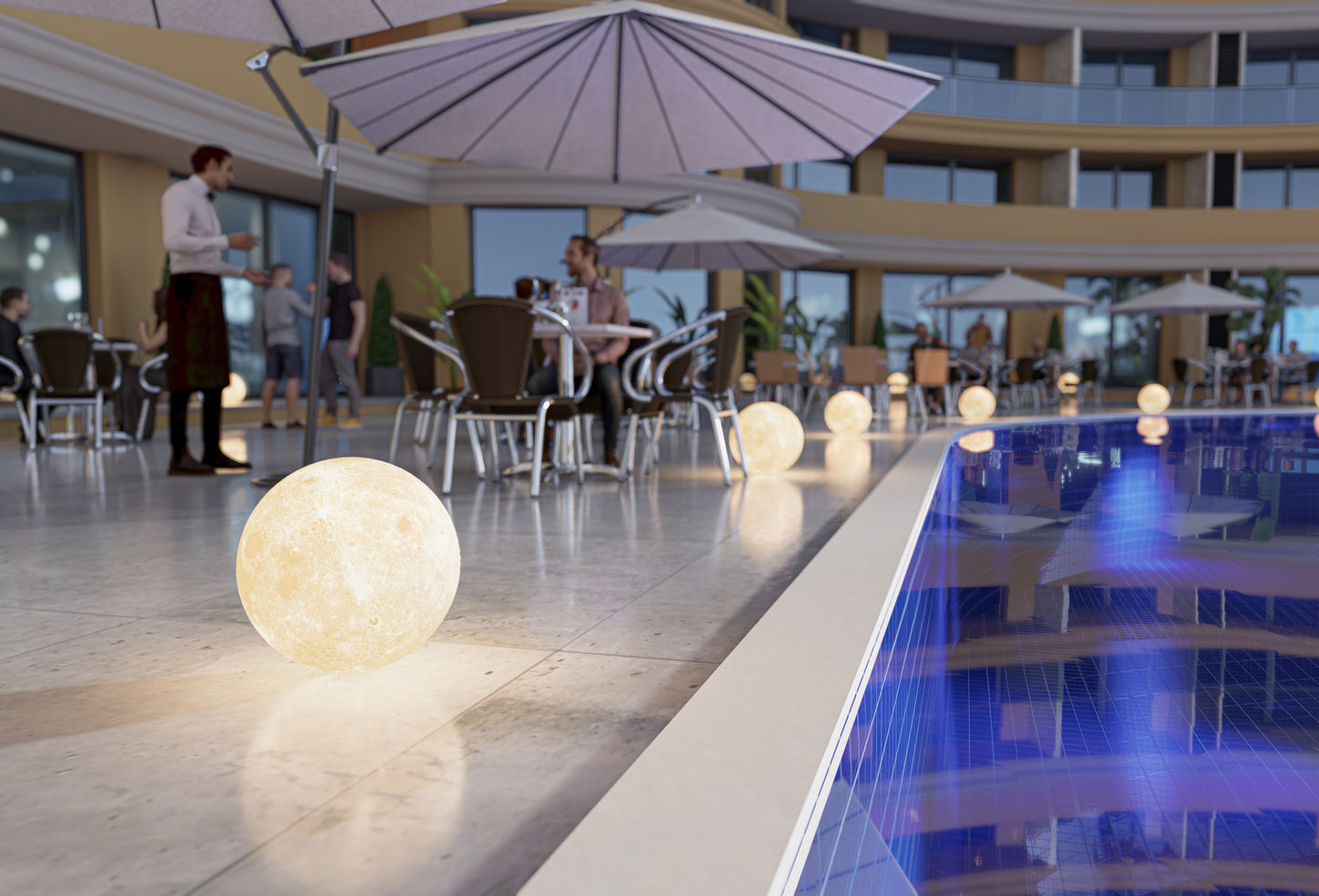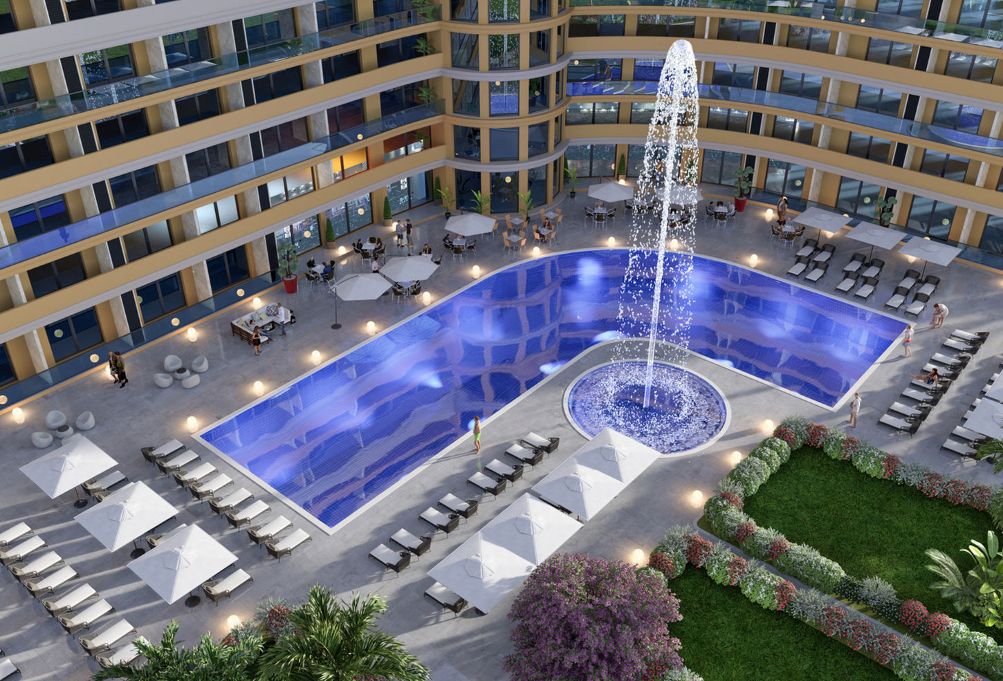 Indoor and outdoor swimming pools, underground parking, children’s playgrounds, restaurants, green areas, sports, massage, sauna, restaurant and roof bar, entertainment, beauty and health center, cleaning service, supermarket and takeaway service are just a few of the services offered to residents.